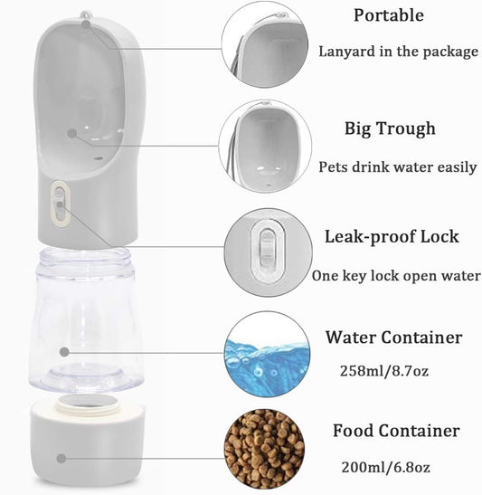 Dog Water Bottle for Walking, Multifunctional and Portable Dog Travel Water Dispenser with Food Container