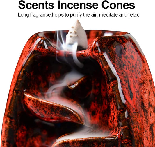 Incense Holder Ceramic Incense Burner Waterfall Aromatherapy Ornament Home Decoration (Red)