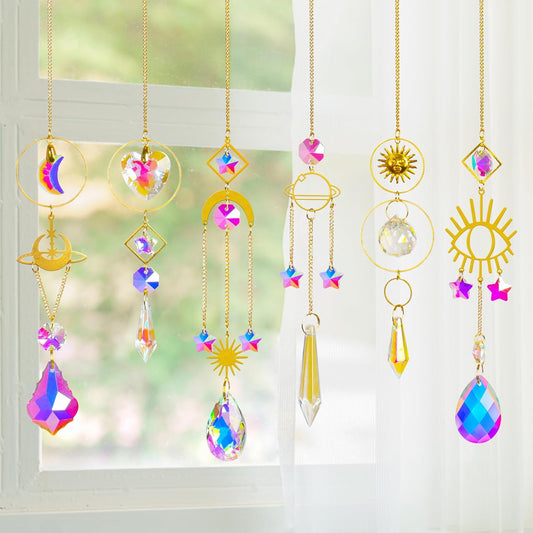 6 Pieces Colorful Crystals Suncatcher with Chain Pendant Ornaments (Gold)