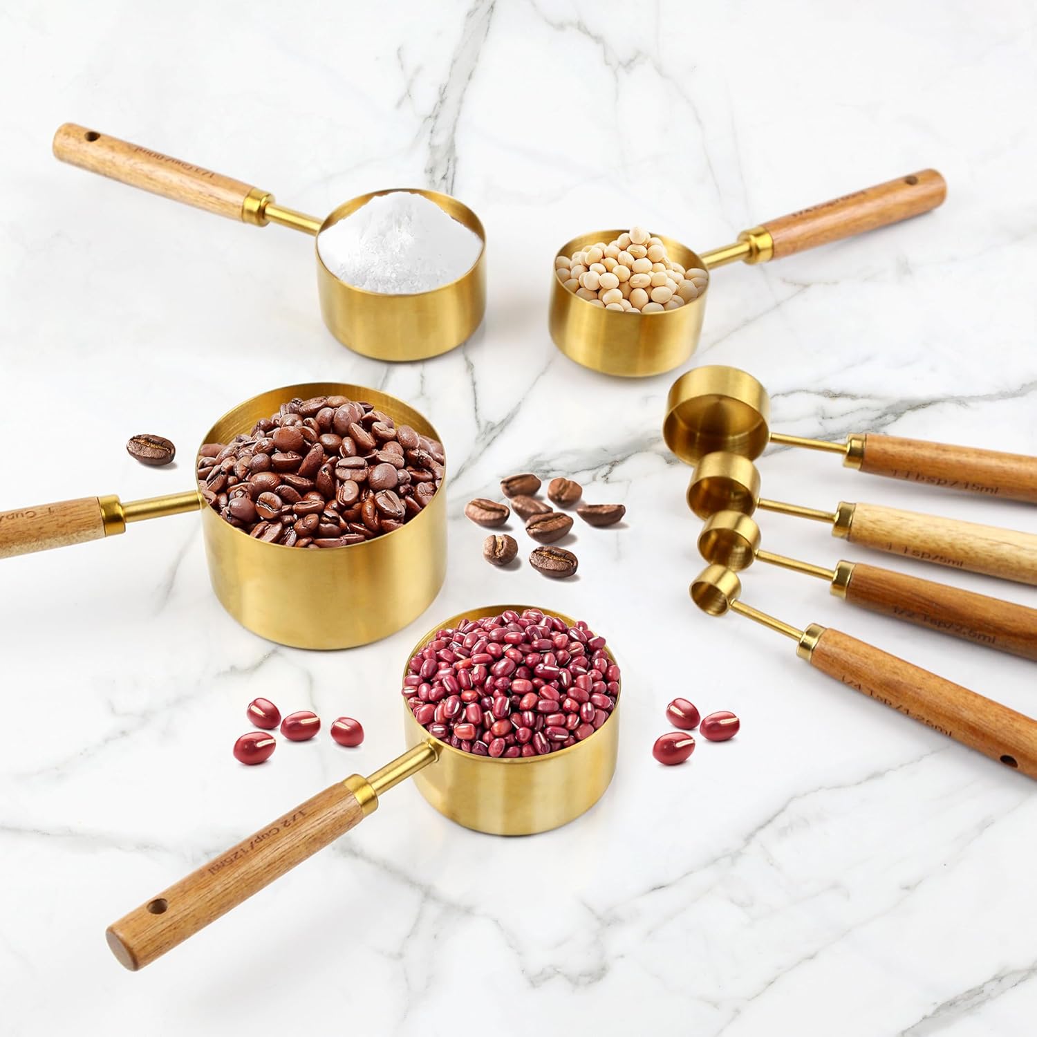 Gold Measuring Cups and Spoons Set,8 Piece Premium Stainless Steel Kitchen Tools