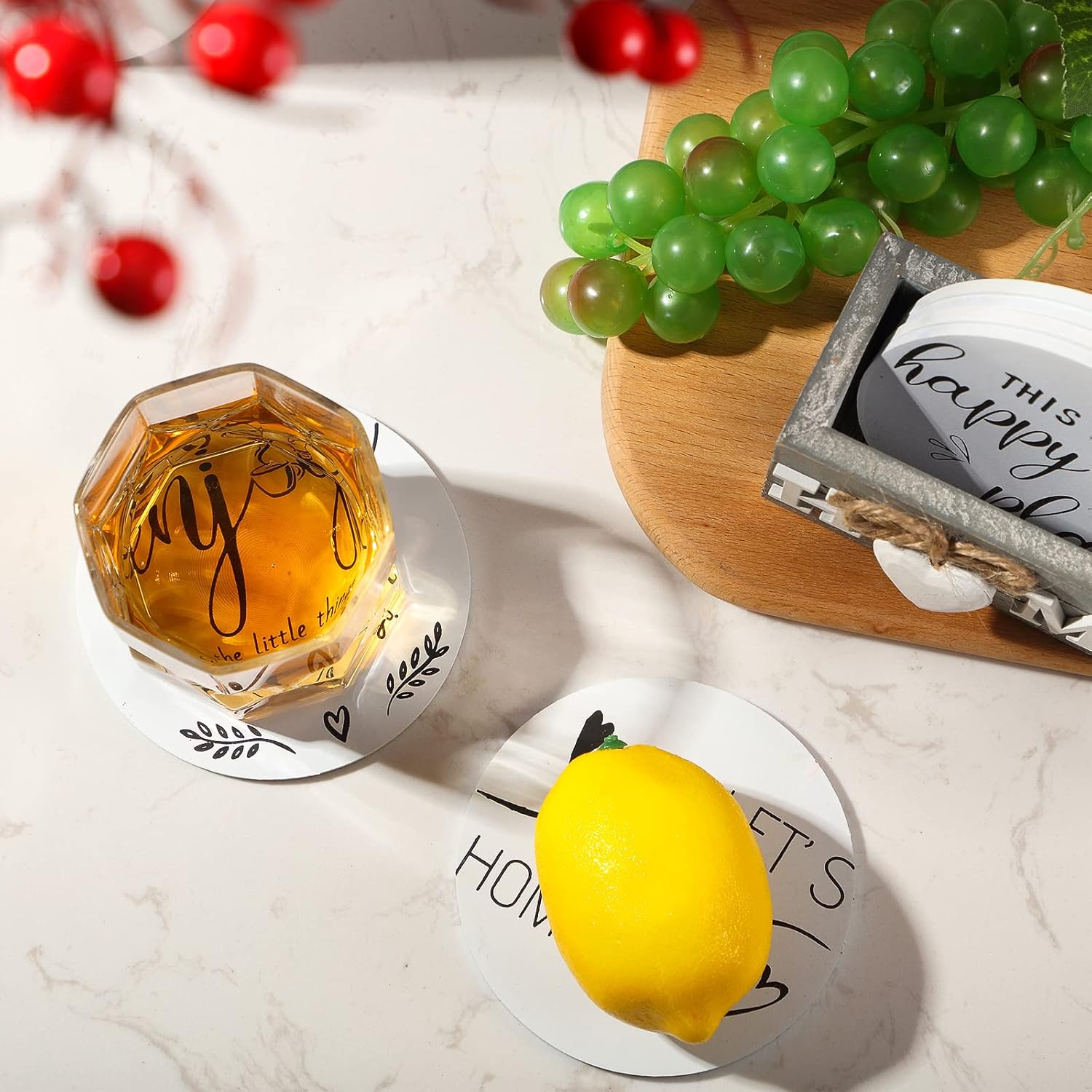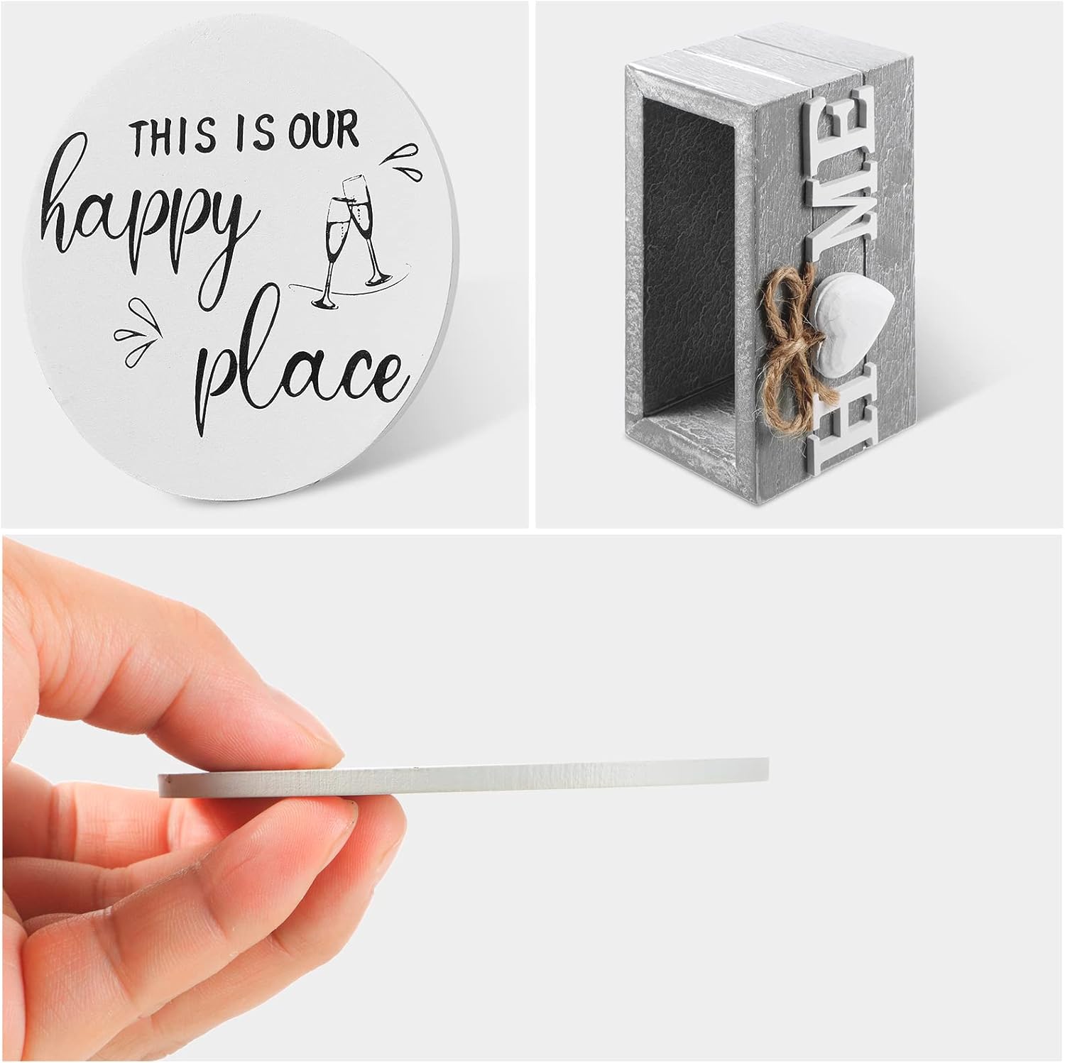 - Comes with 6 wooden coasters in unique farmhouse-inspired designs and a compact storage box (4.53" x 2.17" x 2.56"), ideal for keeping your coasters neatly organized when not in use.